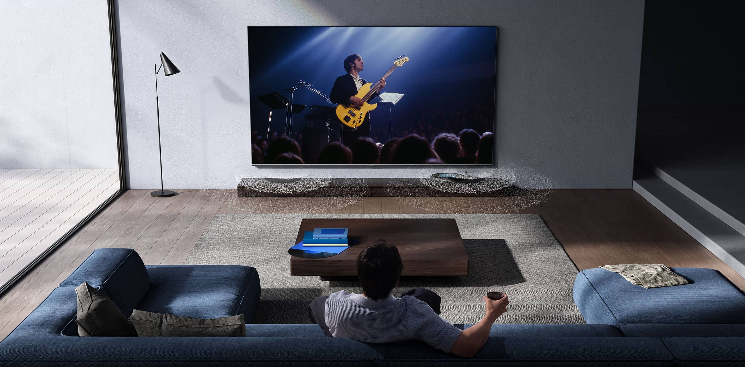 За звук отвечает система мощностью 30 Вт с поддержкой объёмного звучания. Динамики обеспечивают чистое и насыщенное звучание при просмотре фильмов, сериалов и другого контента. Поддерживаются основные аудио- и видеоформаты, включая MPEG, H.264, H.265, FLAC, AAC и DTS. Телевизор также воспроизводит мультимедиафайлы с USB-накопителей.