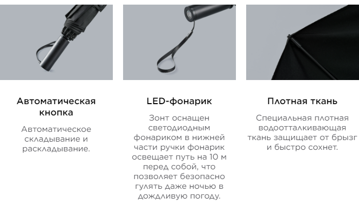 Зонт доступен в двух классических расцветках: черной и серой.
